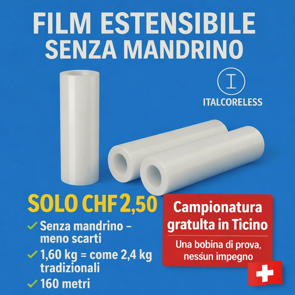 Un ulteriore vantaggio è la fornitura dedicata sul territorio: Italcoreless supporta aziende in Canton Ticino con modalità di consegna concordate in base alle esigenze operative. Per clienti con consumi ricorrenti è possibile valutare forniture programmate o soluzioni di film estensibile personalizzato per spessore, formato o caratteristiche tecniche specifiche.